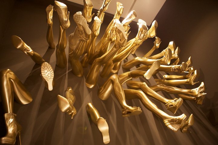 It is an experimental show design exhibit at the Grassi Museum in Leipzig, Germany. The installation is about the madness of women about buying shoes